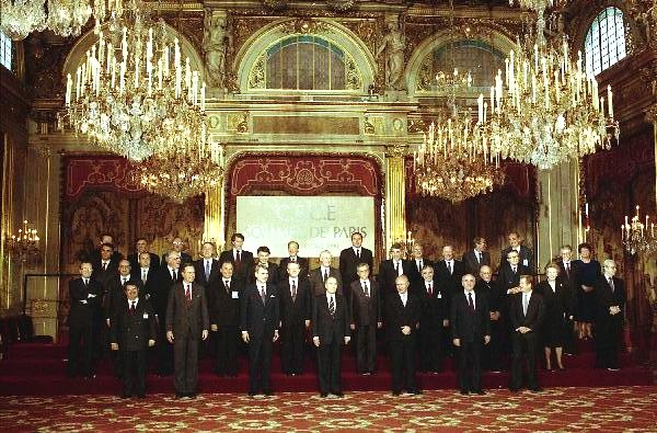 Die Teilnehmenden der KSZE-Konferenz in Paris am 1. Konferenztag, dem 19. November 1990. Foto: Wikimedia/