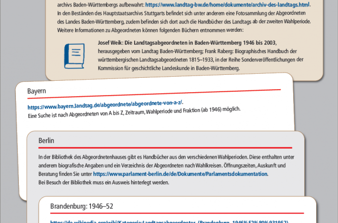 Im folgenden lest ihr einen Ausschnitt aus dem Kapitel „Abgeordnete“ des Arbeitshefts „Lokale Spurensuche im Themenfeld Demokratiegeschichte“. Mehr Infos dazu folgen am Textende. Als Spurensuche bezeichnet man eine Methode, um Geschichte vor Ort zu erforschen. Seit der Gründung des Deutschen Reichs 1871 schicken Wahlkreise ihre Abgeordneten zum Bundestag – früher … mehr